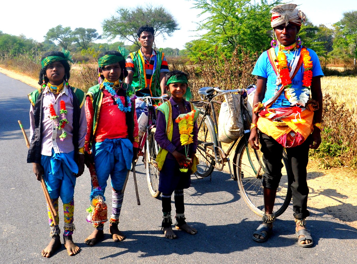 وہ رنگین اور شاہی نظر آنے والی پوشاک میں تھے۔ اور تو اور، انہوں نے گلے میں مالا، چمکدار واسکٹ، گھنگھرو کے ساتھ پائل پہن رکھی تھی اور مختلف قسم کے صافے باندھے ہوئے تھے۔ ان میں سے ایک نے سر پر دولہے کا سہرا پہنا ہوا تھا۔ میں نے من ہی من سوچا: یہ تو ضرور کسی تھیٹر گروپ کا حصہ ہیں۔