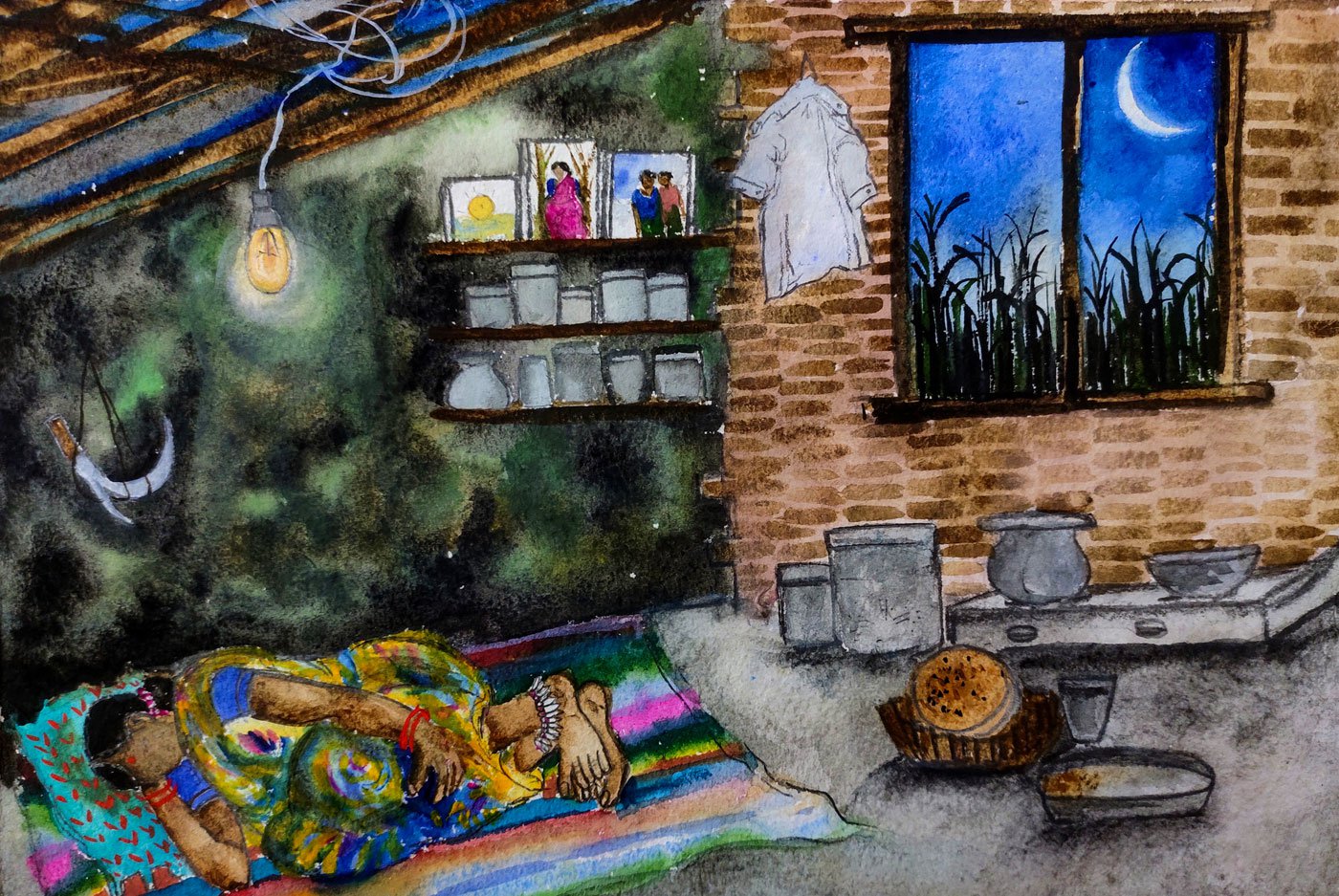 शीला, महाराष्ट्र के बीड जिला के राजुरी घोड़का गांव के बहिर इलाका मं रहिथे, बीड सहर ले ये जगा ह करीबन 3 कोस दूरिहा हवय. ईंटा ले बने दू खोली के घर मं जब वो ह अपन घरवाला मानिक अऊ तीन लइका कार्तिक, बाबू अऊ रुतुजा के बगल मं जब सुते के कोसिस करत कलथत रहिथे, त ओकर दबे रोवई ले सब्बो के नींद टूट जाथे. वो ह कहिथे, “मोर रोवई दूसर के नींद मं दिक्कत के कारन बन जाथे, तब मंय अपन आंखी ला मूंदे कलेचुप सुते के कोसिस करथों.”